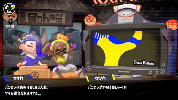 スプラトゥーン3は、毎回起動するたびに始まる「すりみ連合」のラジオの画面のフレームレートが上がり、バンカラ街の広場もフレームレートが上がって動きが滑らかになっていました。